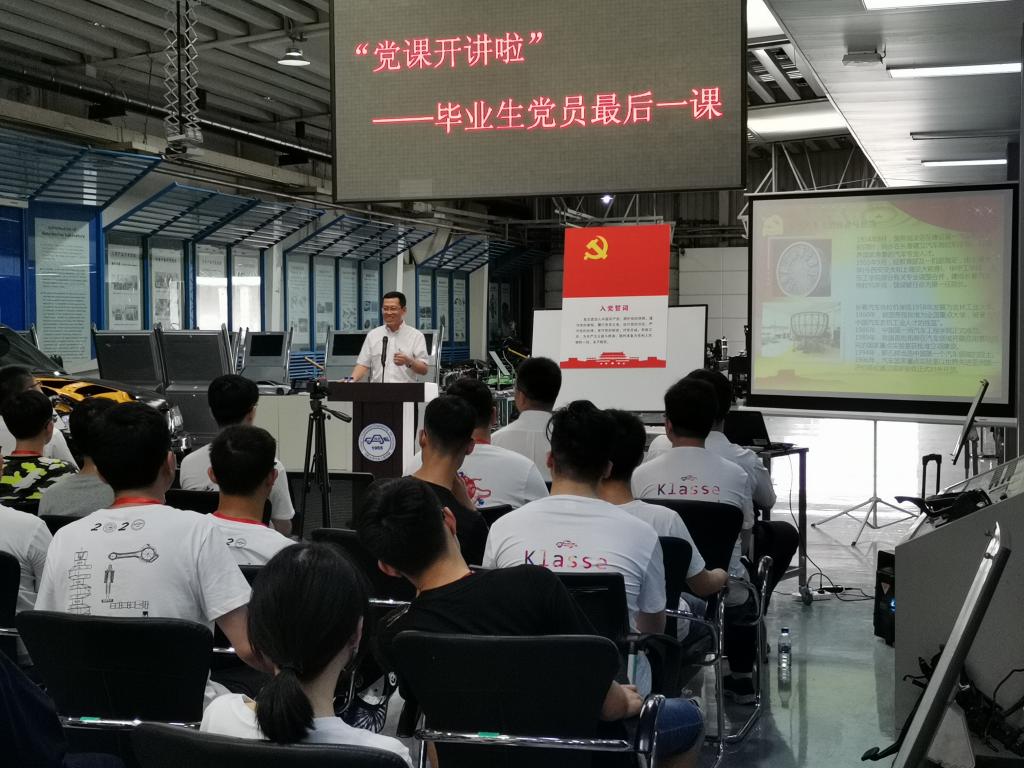 6月29日,澳门百家乐网址 党委举行了主题为“抗击疫情,爱党报国——吉大汽车人的使命与担当”的毕业生党员最后一次党课。为满足疫情防控要求,保证良好通风,党课被安排在汽车构造实验室进行。党委书记李善兴、党委副书记兼副院长盛磊、百家乐网址 相关科室老师及2020届博士、硕士、本科毕业生党员参加了本次活动。活动由学生工作办公室主任吴昊老师主持。