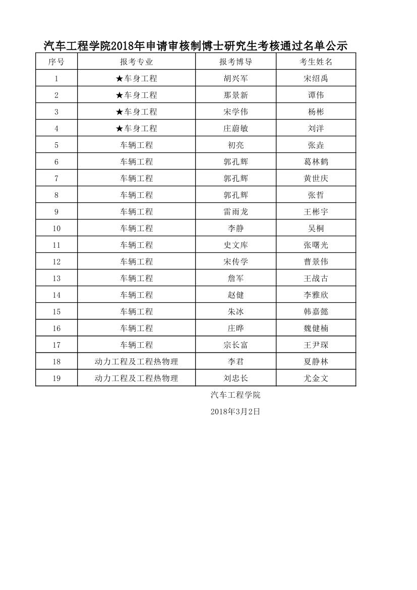 澳门百家乐网址 2018年申请审核制博士研究生考核通过名单公示
