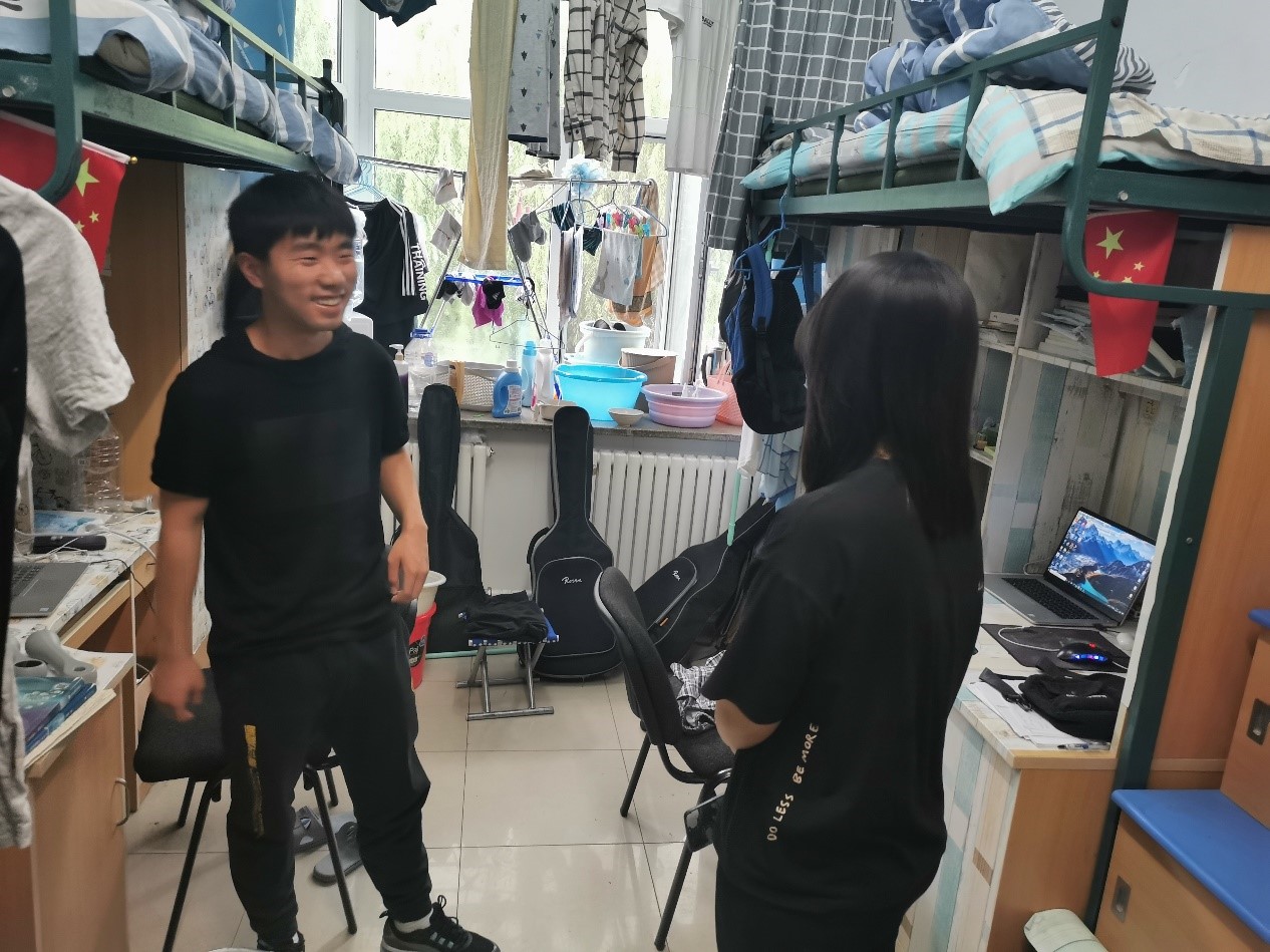 在寝室检查过程中,李老师与同学们细致交流,详细了解了学生疫情期间居家生活和学习情况以及期末考试的复习情况,并与同学们探讨了疫情居家学习的利弊。此次李老师重点检查了寝室是否使用违章电器,并且强调了疫情期间应重视寝室卫生,希望同学们勤通风勤打扫。李老师呼吁同学们遵循学校疫情防控安排,坚持做到 “一日三测温,一点名”。