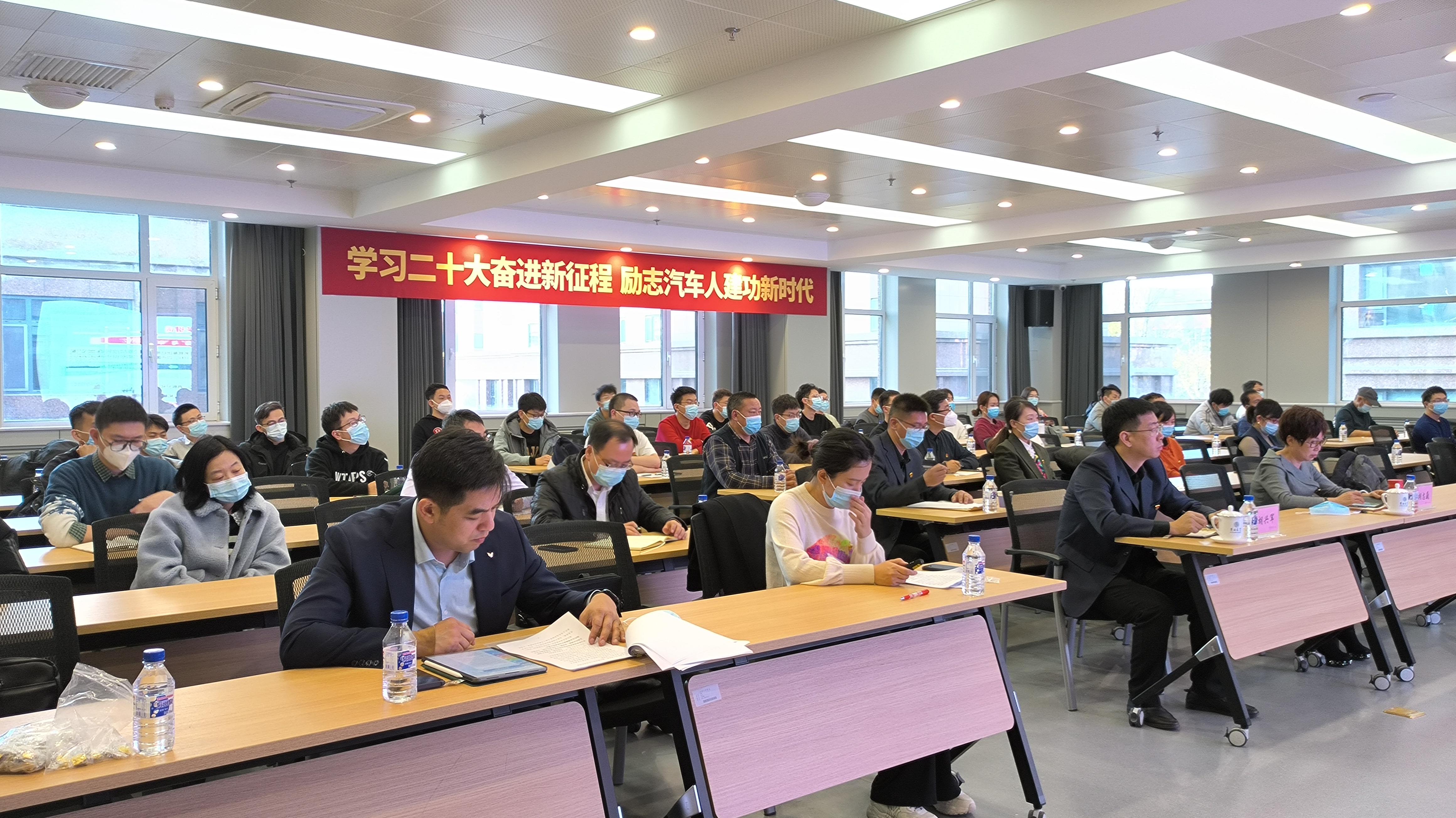 郑校长结合学校工作实际,从时代使命和责任担当的角度出发,对贯彻二十大精神提出了三点希望。一是坚定信念、心怀家国。要自觉听从党和人民召唤,胸怀“国之大者”,坚定理想信念,对党忠诚、为国奉献。二是以德为先、修身养性。郑伟涛强调要“干惊天动地事,做隐姓埋名人”,做到心有所畏、言有所戒、行有所止,修身律己、克己止欲。三是苦练本领、担当作为。要把学习、把能力培养作为首要任务,作为一种责任、一种精神追求、一种生活方式。同时,在学习和工作中敢于挑大梁,时刻把责任扛在肩,无惧暂时的挫折,保持冲锋的姿态,不断增强做中国人的志气、骨气、底气。