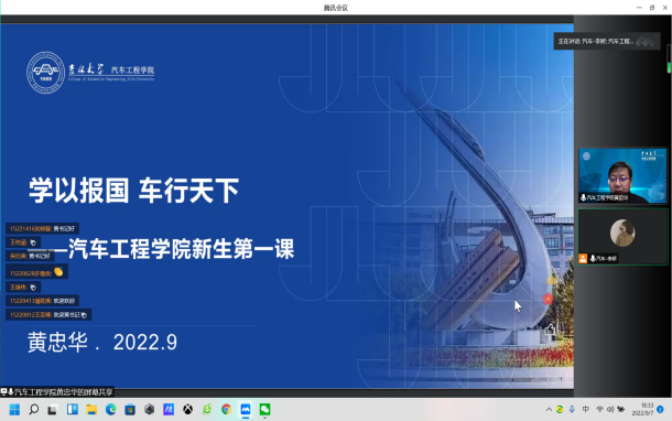 党委书记黄忠华以线上方式主讲,辅导员李娇老师组织新生观看。